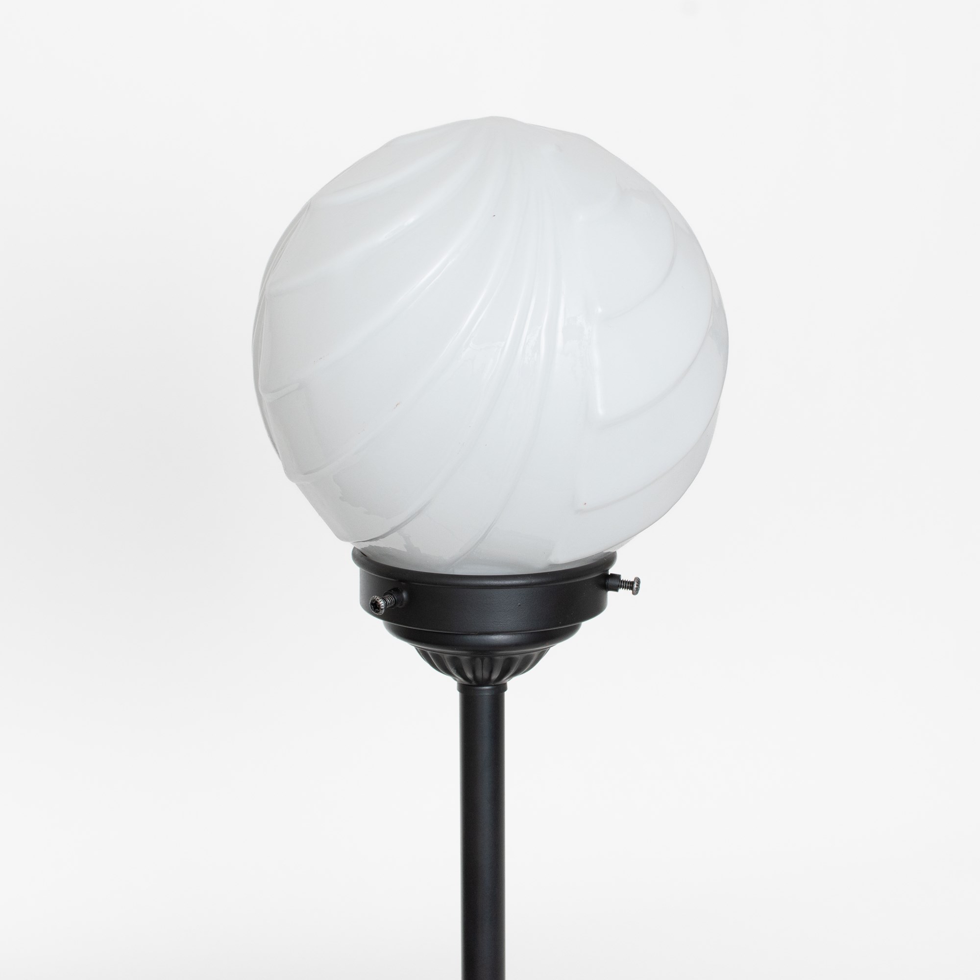 Jugendstil-Glühbirne mit Glasschirm in schwungvollen asymmetrischen Formen. Anmutige, glatte Linien sorgen für einen spielerischen Effekt. Opalweißes Glas.