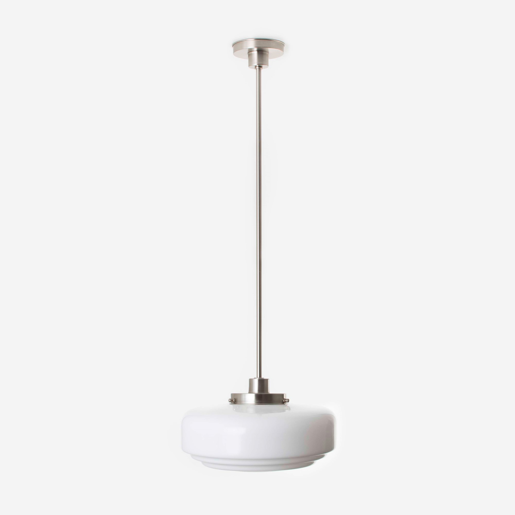 Ein horizontaler Lampenschirm aus Glas in einer geschichteten Form. Der Name der Lampe erinnert an den Architekten Frank Lloyd Wright (1867 - 1959). Sein Stil zeichnete sich durch die horizontale Konstruktion aus. Mundgeblasen aus opalweißem Glas.