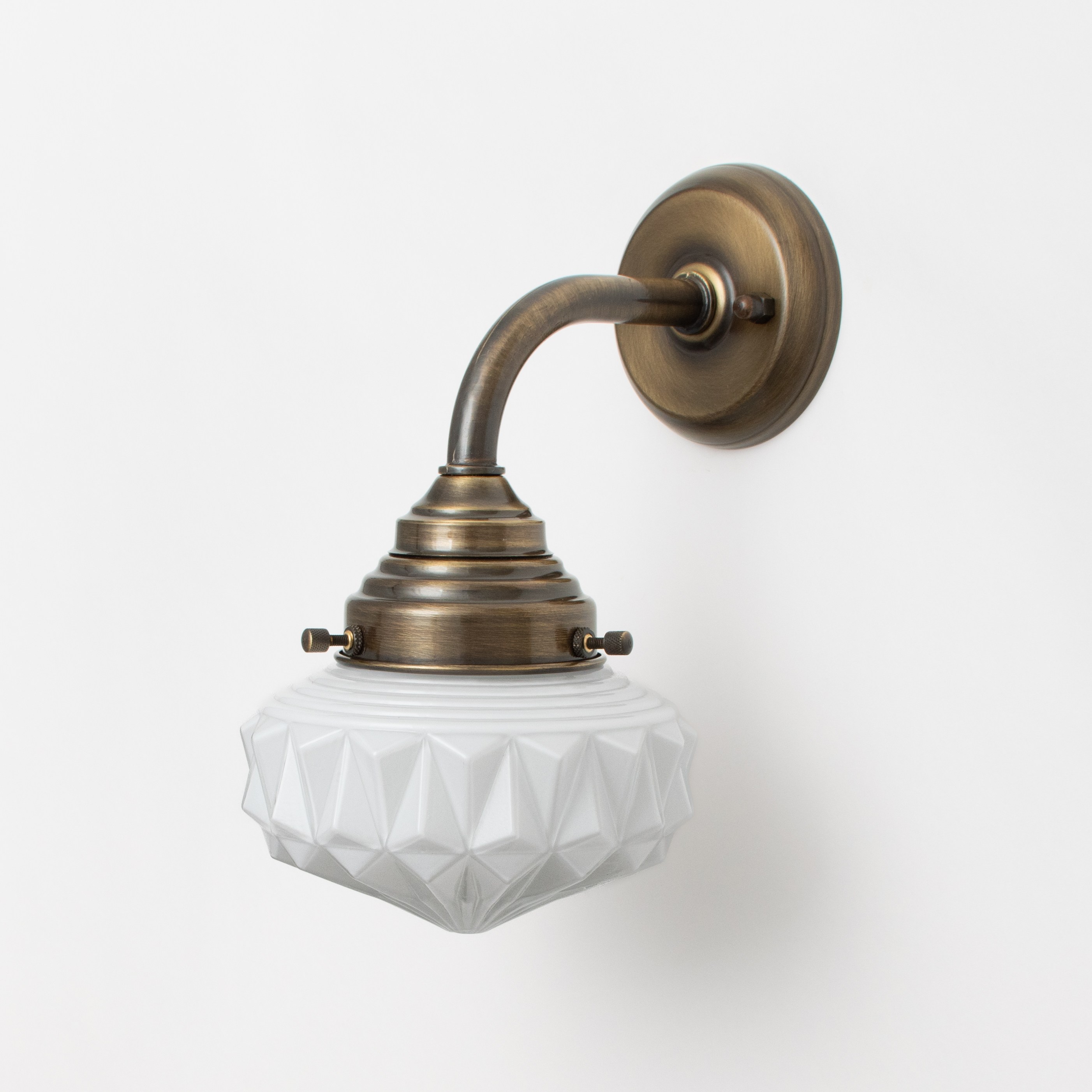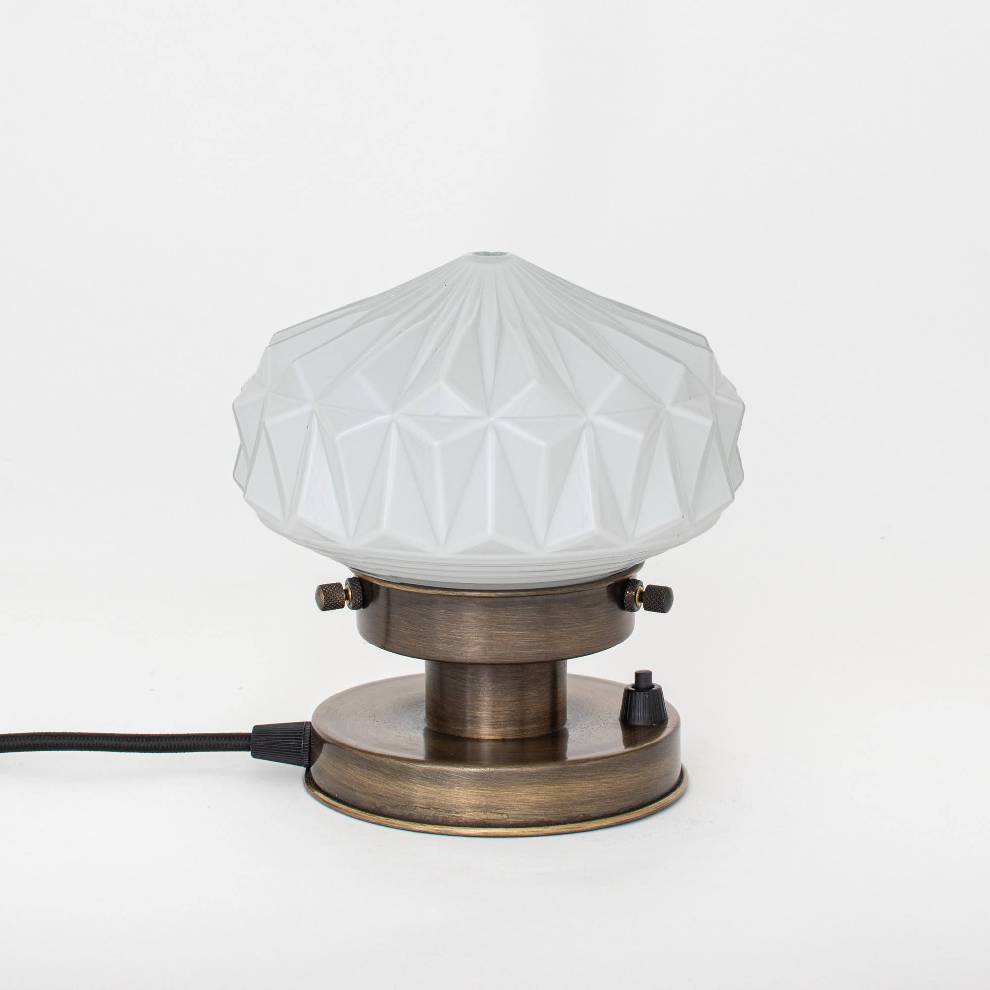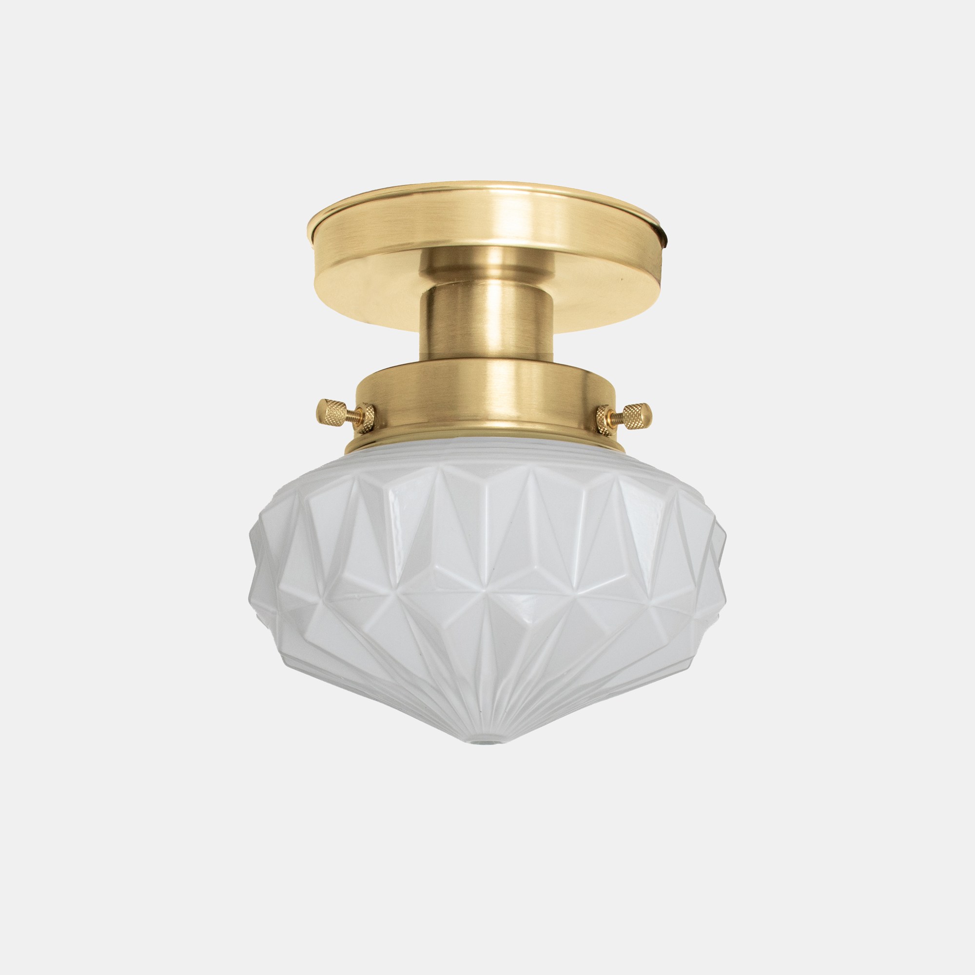 Dieser opalweiße Art-Déco-Glasschirm leuchtet wie ein ewiger Stern. Beachten Sie das komplizierte dekorative grafische Muster, das im Innenraum wie ein Diamant funkeln wird!