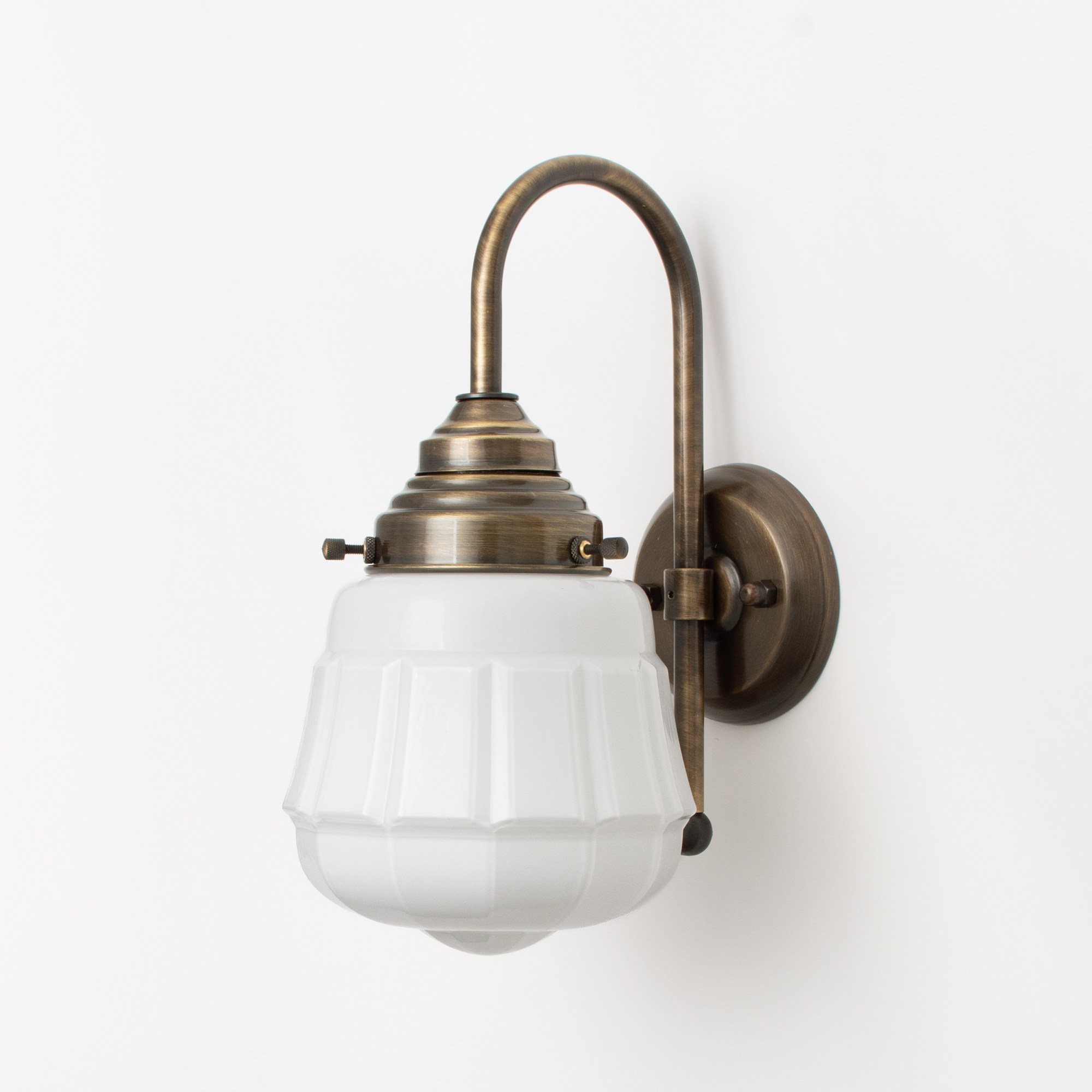 Dieses rhythmisch geformte Modell bringt Ruhe und Stabilität in den Innenraum. Der Glasschirm ist in Opalweiß gehalten.