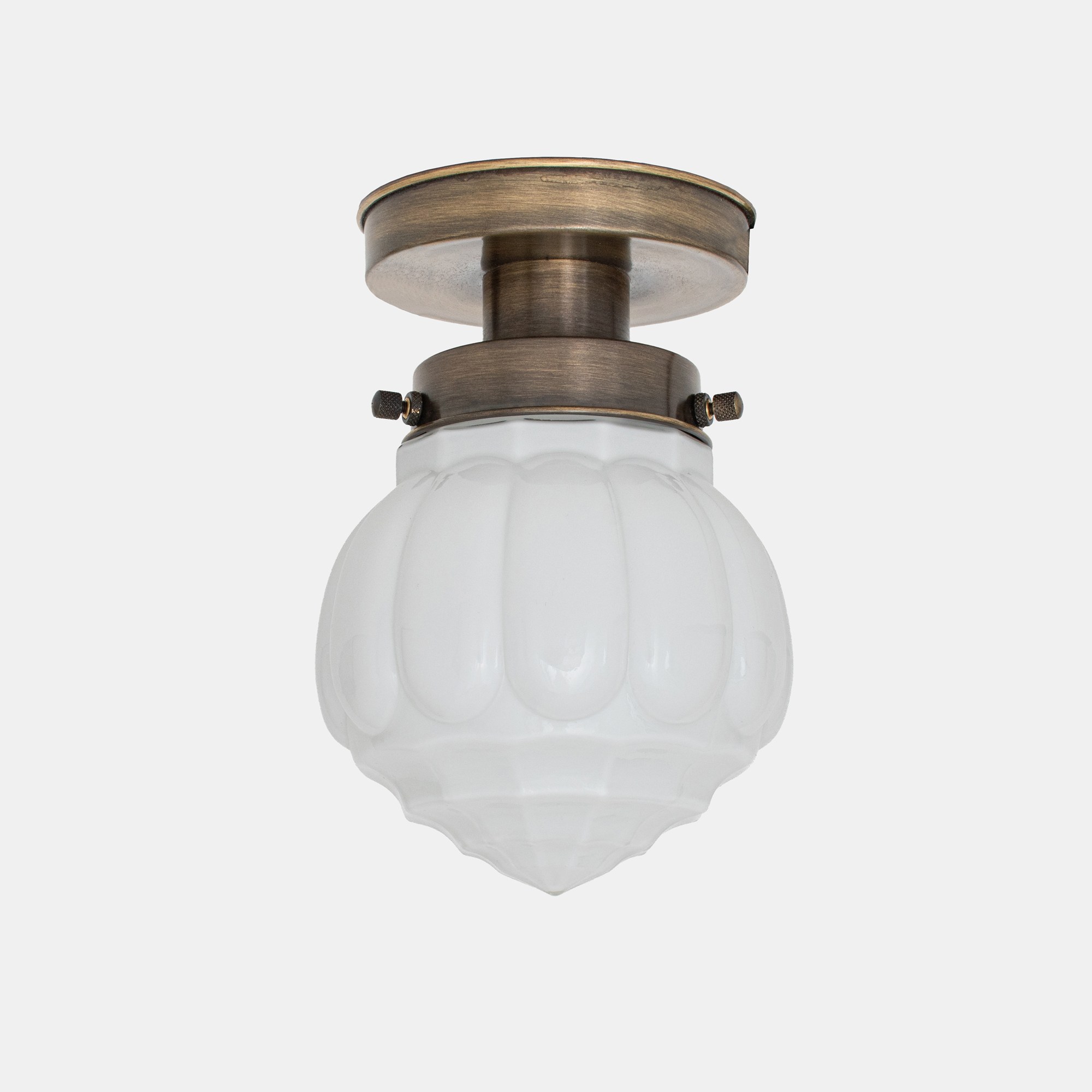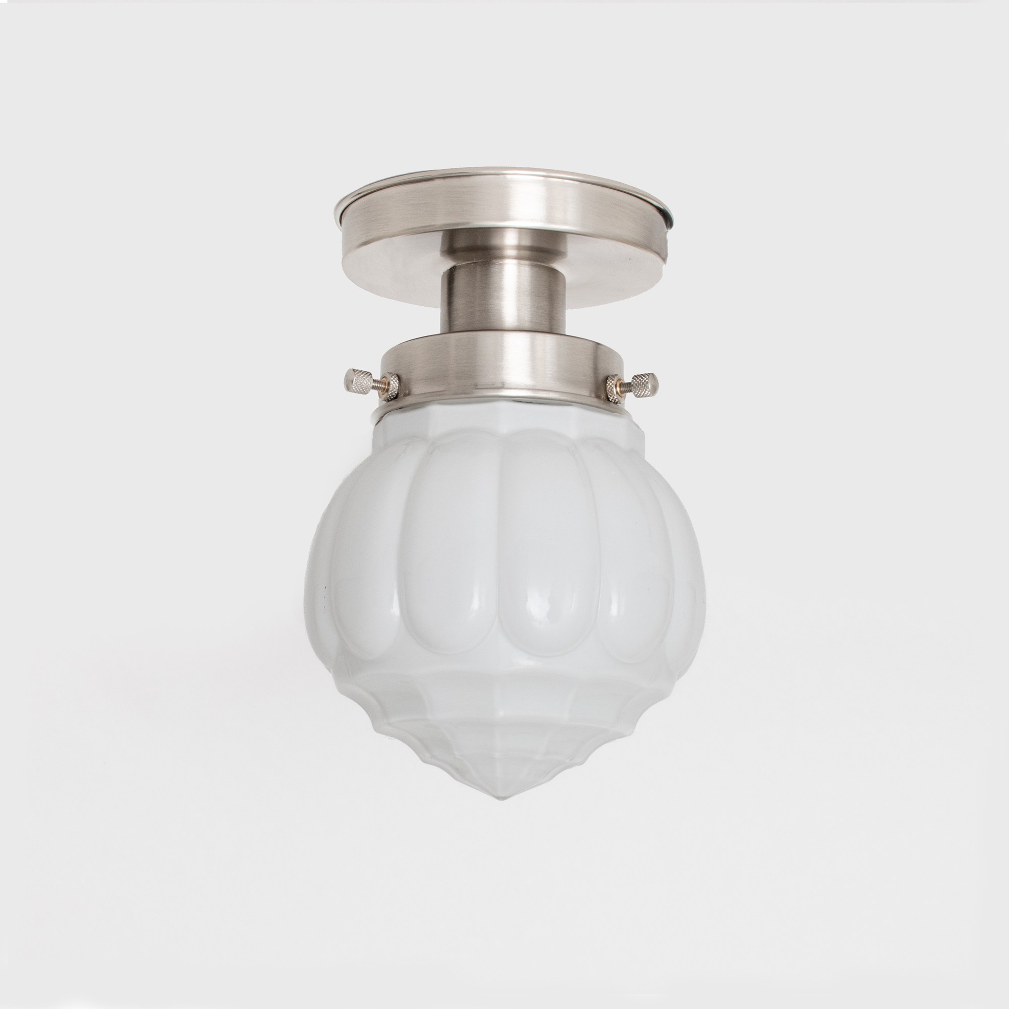 Dieser opalweiße Glasschirm mit runden Formen und grafischen Linien eignet sich perfekt für eine fantastische Innendekoration. Gemeinsam essen, genießen und anstoßen!
