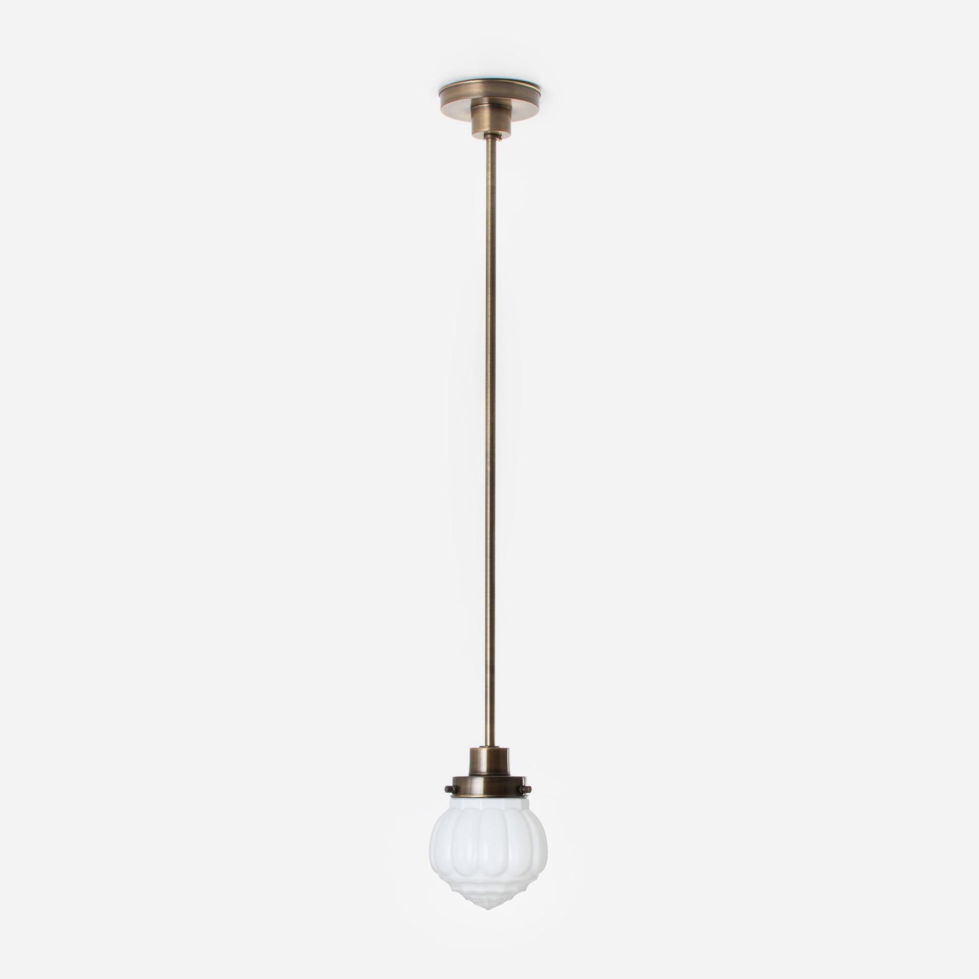 Dieser opalweiße Glasschirm mit runden Formen und grafischen Linien eignet sich perfekt für eine fantastische Innendekoration. Gemeinsam essen, genießen und anstoßen!