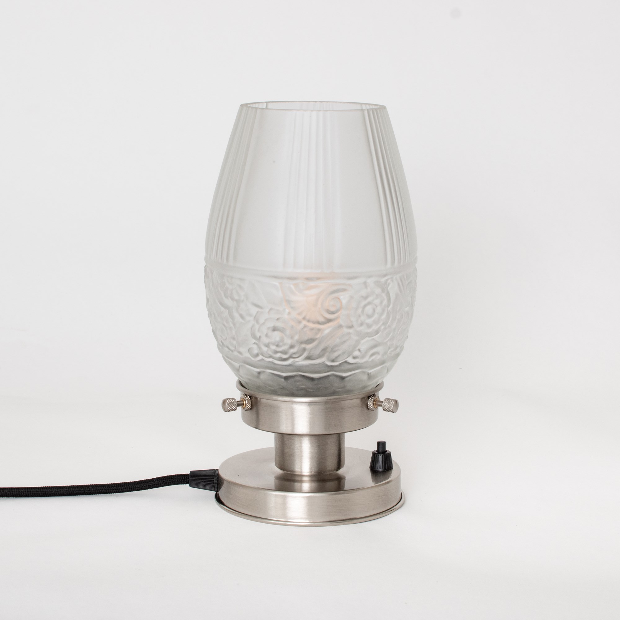 Der Fuß dieser Leuchte ist von solider Qualität und steht beispielsweise fest auf einem Tisch, Schrank, Fensterbrett oder Nachttisch.