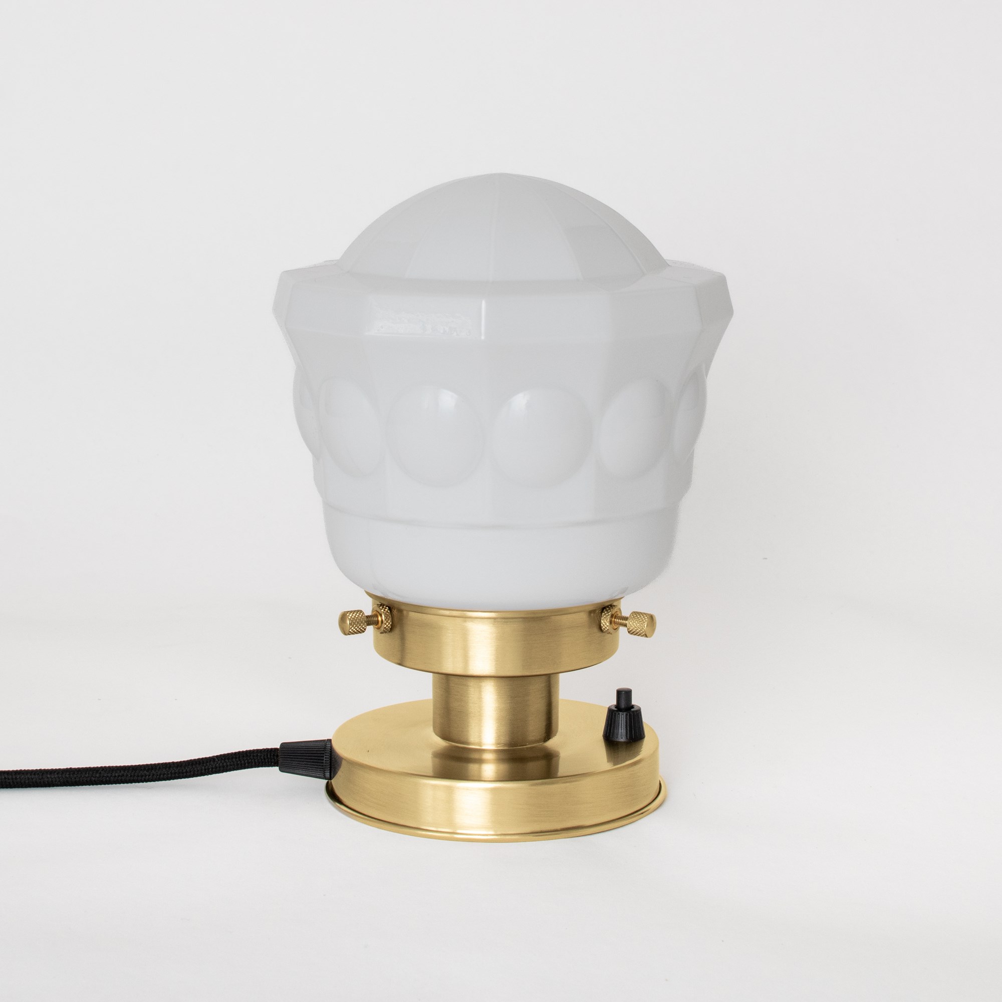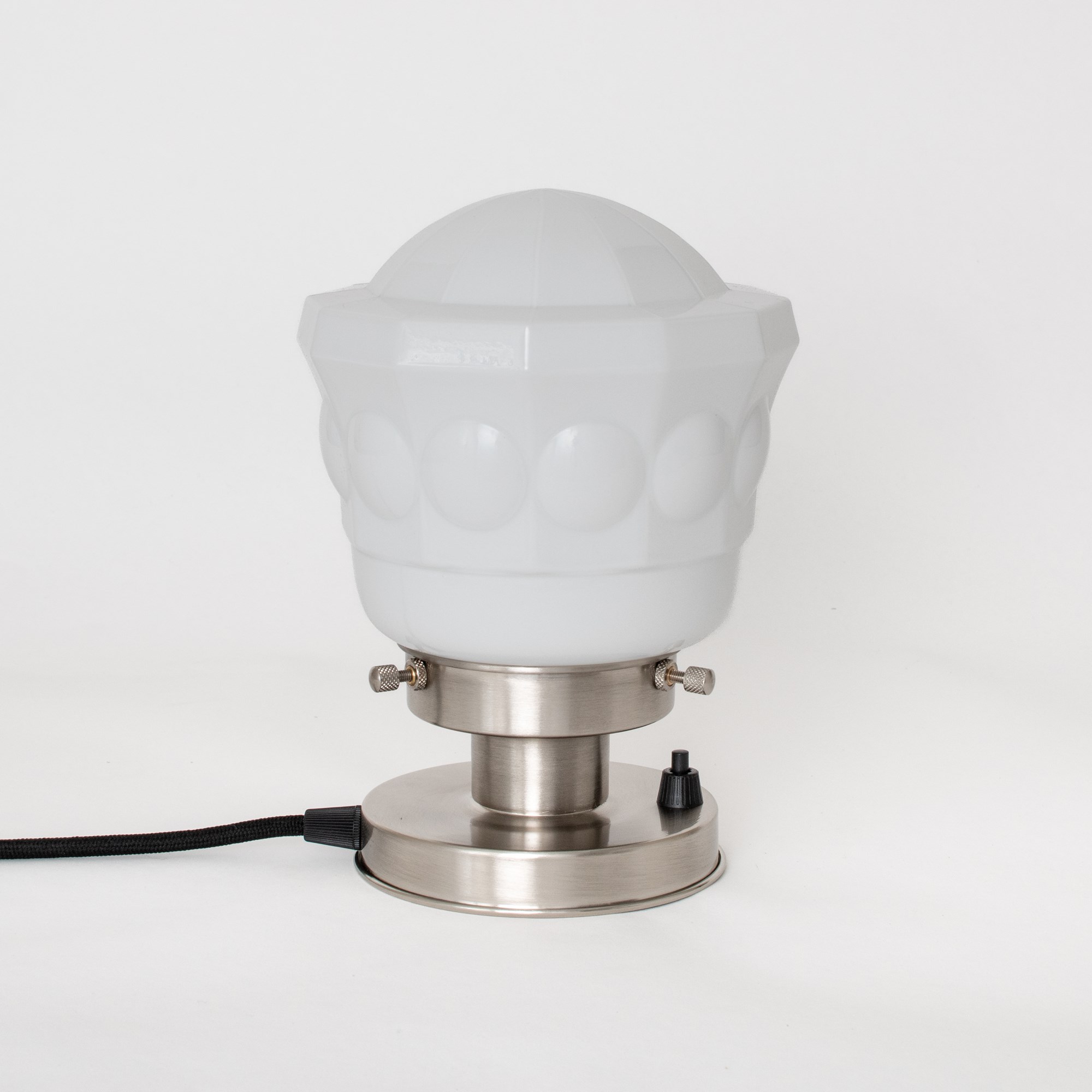 Diese langlebige Tischleuchte kann immer mit einem anderen Glasschirm ausgestattet werden!