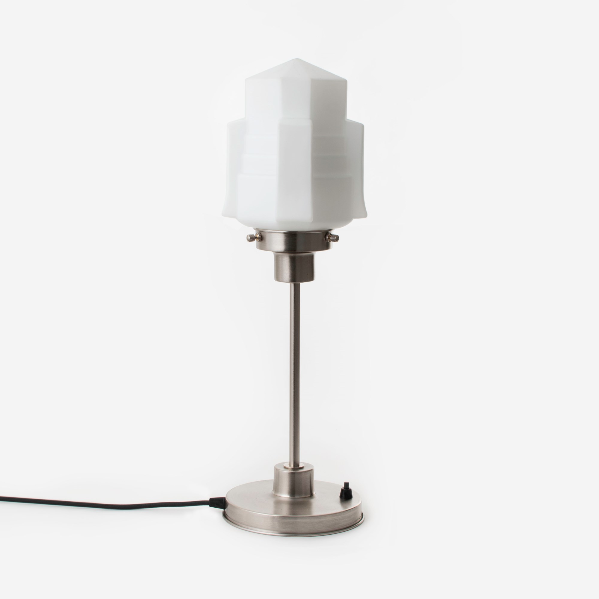 Diese langlebige Tischleuchte kann immer mit einem anderen Glasschirm ausgestattet werden!
