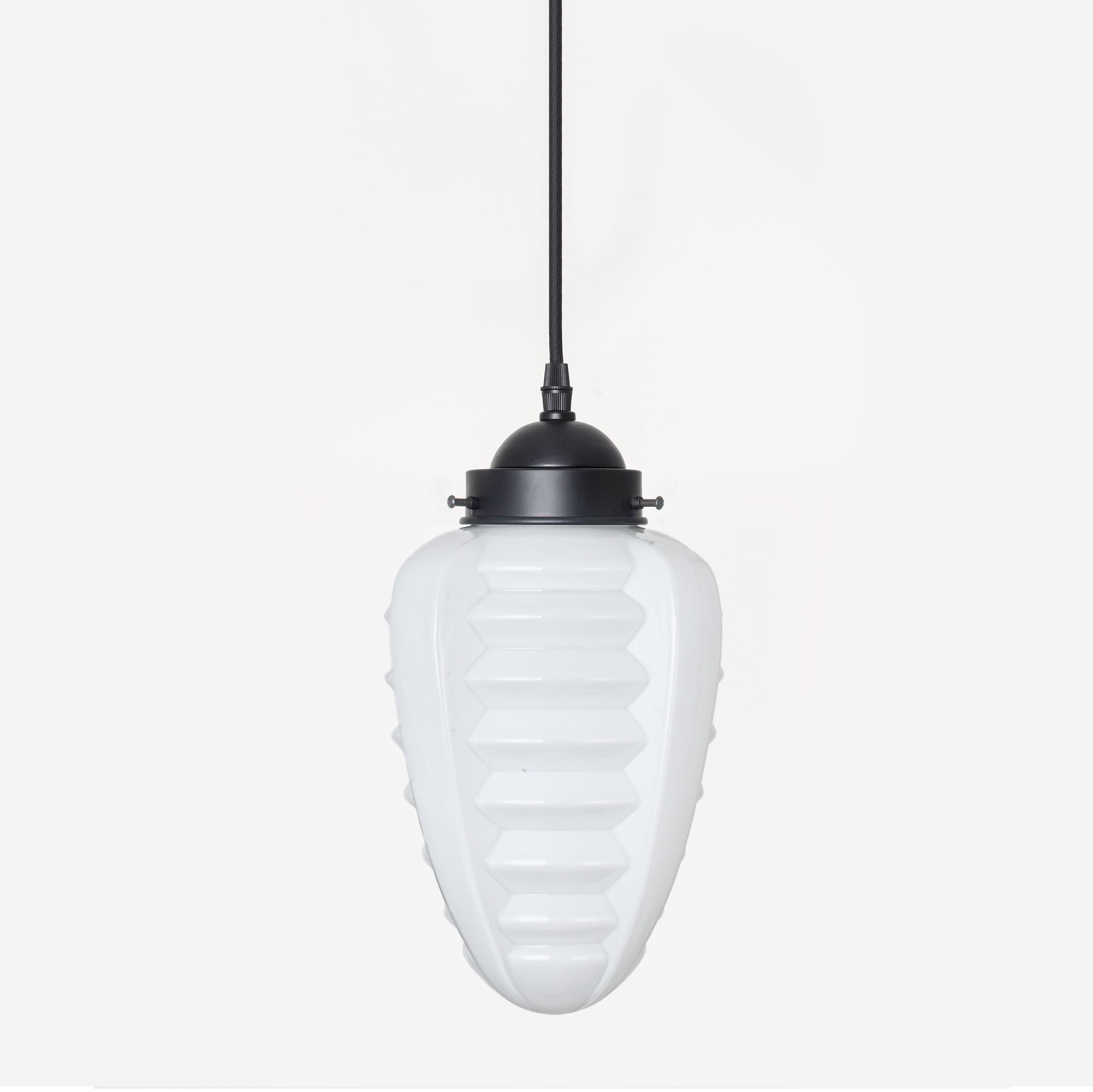 Die Parabelform ist ein häufig wiederkehrendes Element im Stil der Amsterdamer Schule. Sehen Sie hier den extravaganten parabolischen Glasschirm in Opalweiß, der zu beeindrucken verspricht.