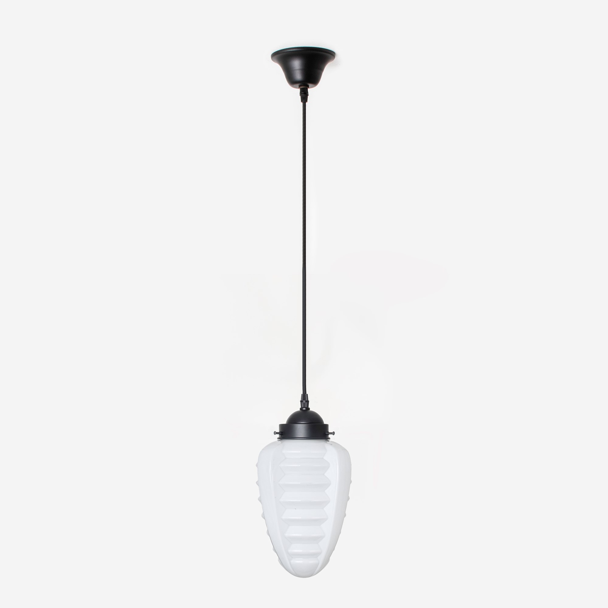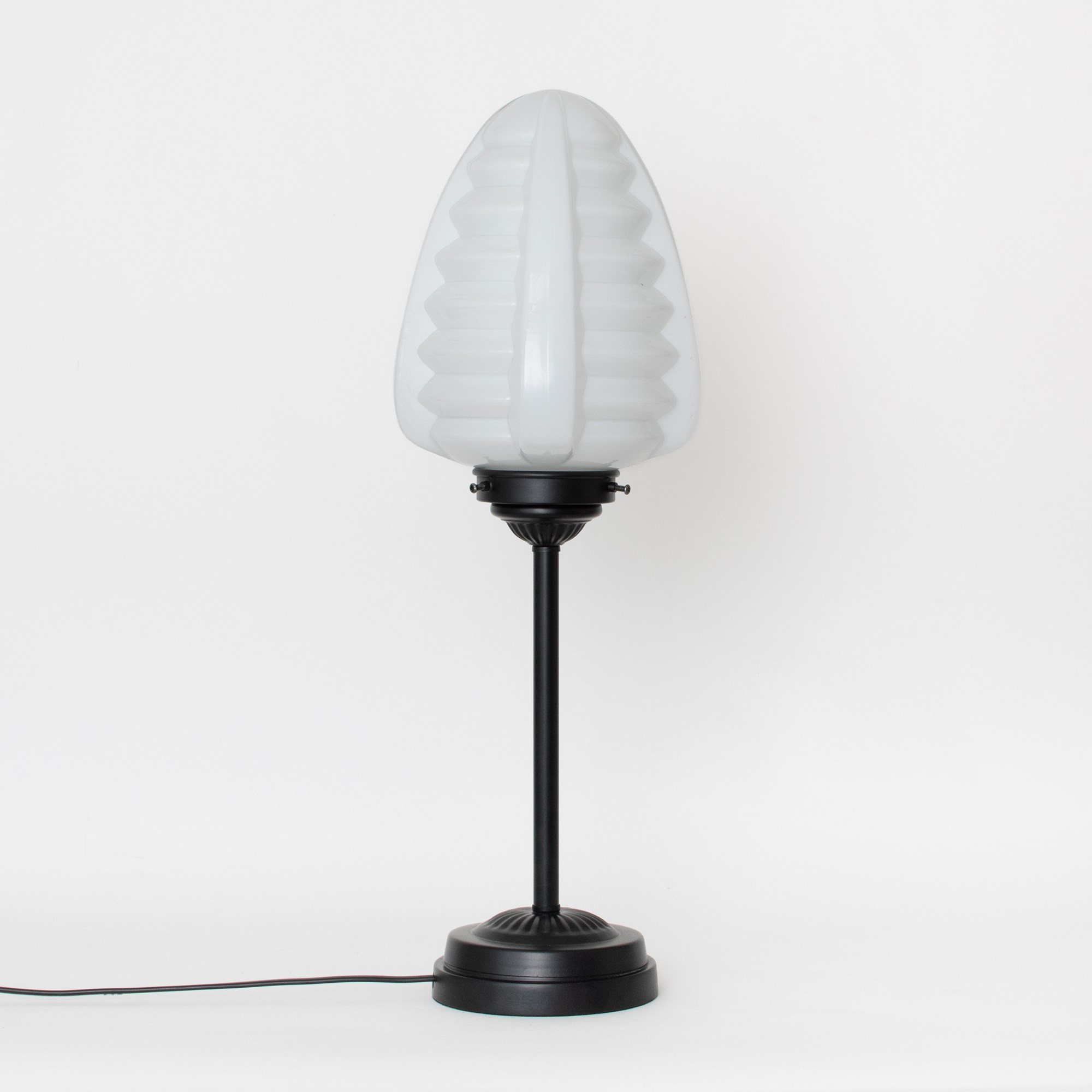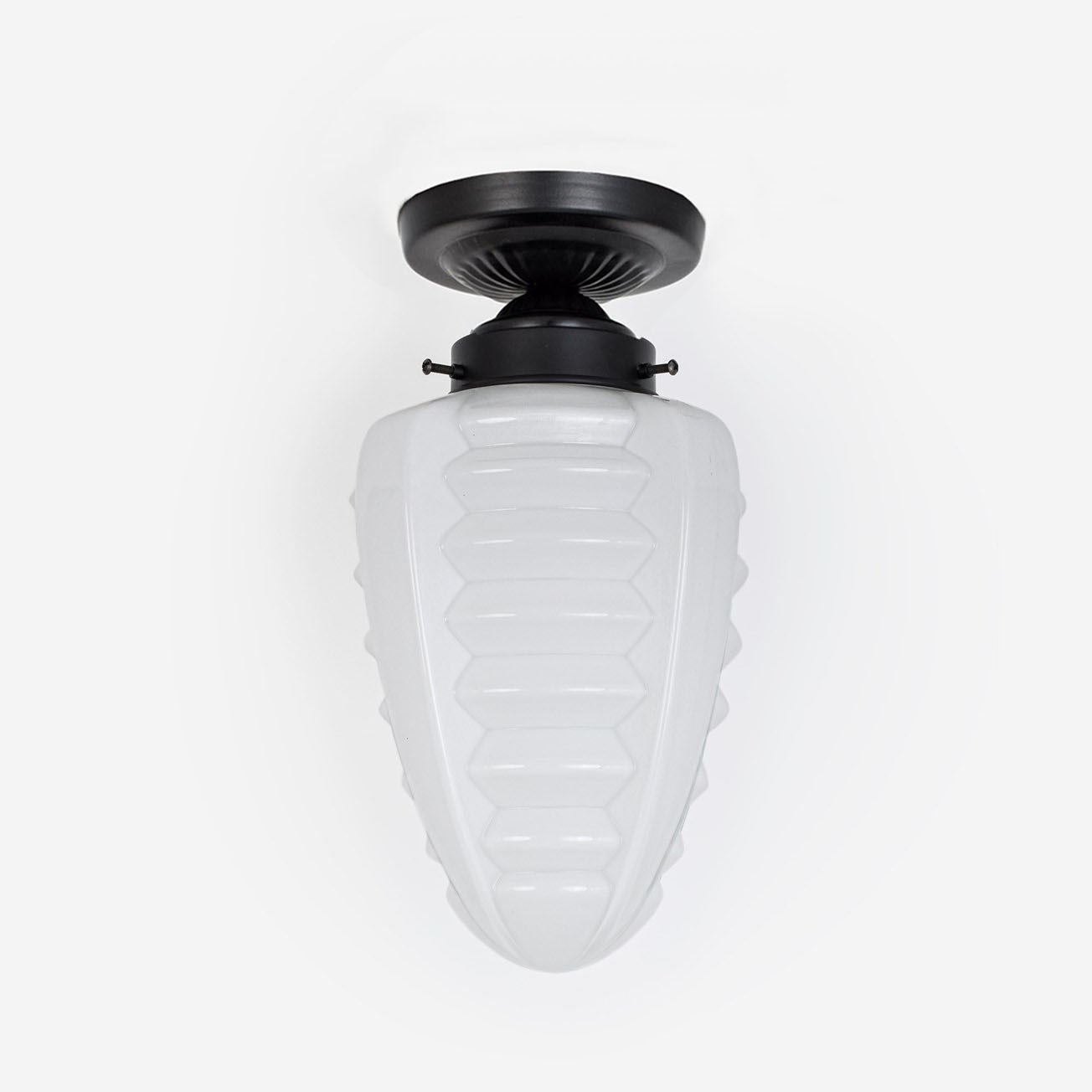 Die Parabelform ist ein häufig wiederkehrendes Element im Stil der Amsterdamer Schule. Sehen Sie hier den extravaganten parabolischen Glasschirm in Opalweiß, der zu beeindrucken verspricht.