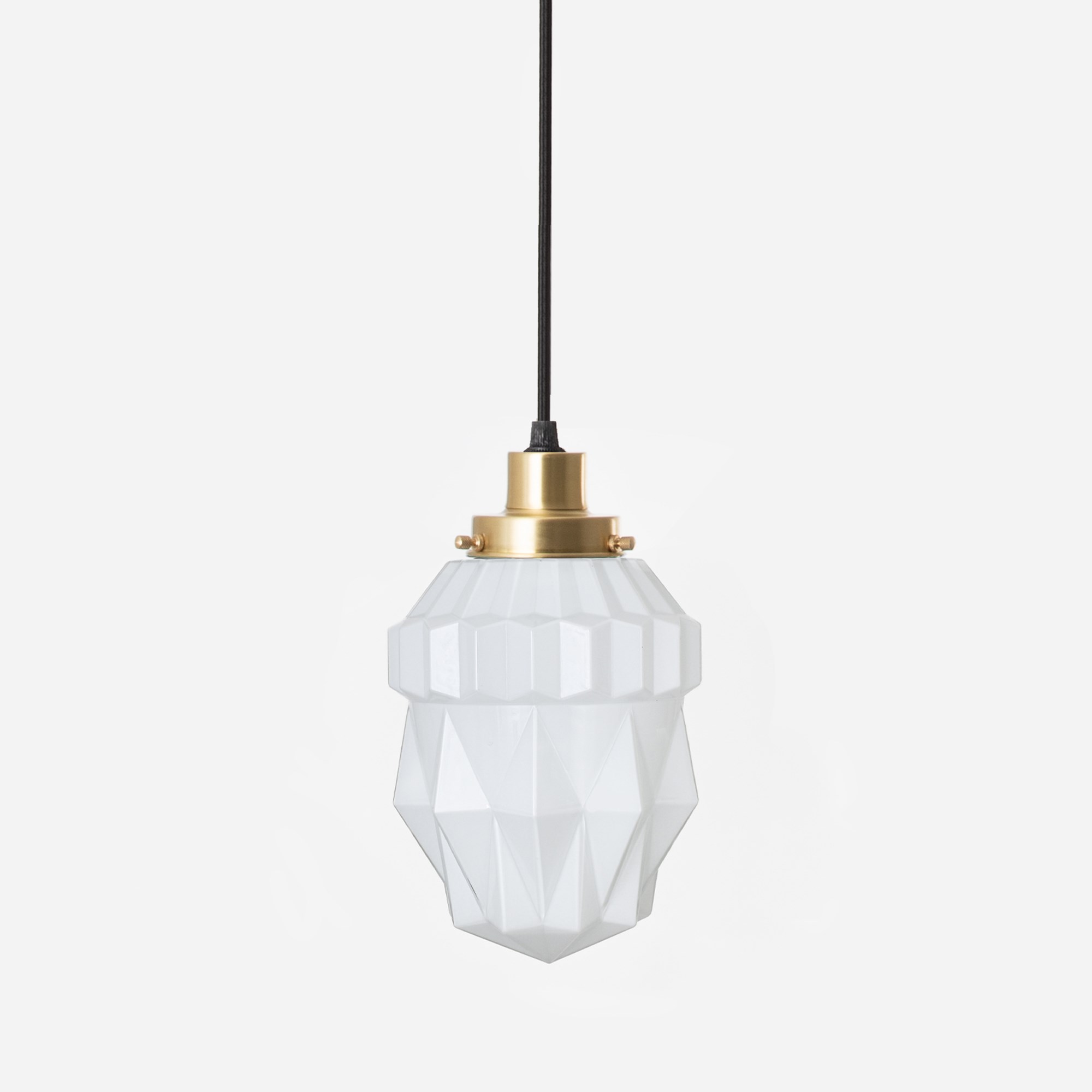 Dieser spektakuläre Glasschirm mit gewellten Winkeln funkelt und ist ganz in Harmonie. Ein Spitzenmodell aus opalweißem Glas.