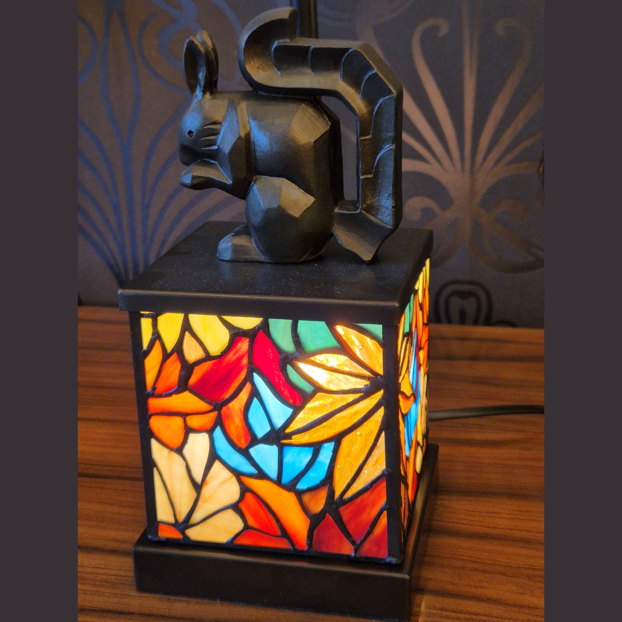 Schauen Sie sich unser Art-Déco-Eichhörnchen an! Die Kreatur läuft nicht plötzlich weg, sondern bleibt geduldig stehen. Genießen Sie es.