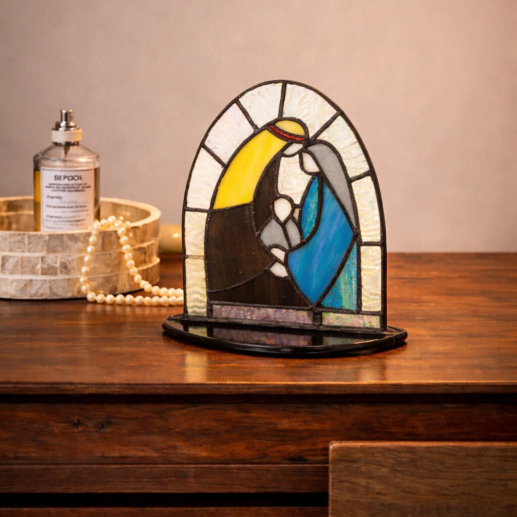Dieses Kunstwerk ist ein wunderschönes Geschenk für frischgebackene Eltern, erinnert aber auch an Weihnachten und die Geburt des Jesuskindes.