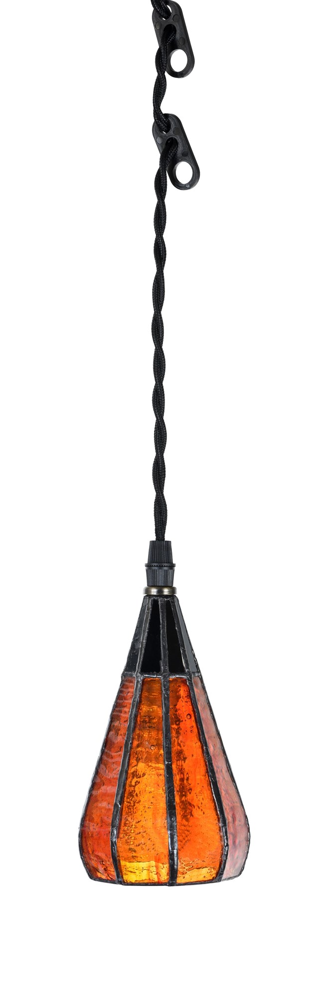 Am Glasschirm ist ein 2 Meter langes Kabel mit angeschlossenem Stecker befestigt. Die Absicht besteht darin, diese Lampe kreativ zu nutzen. Die geflochtene Lockenschnur kann ganz nach eigener Vorstellung um einen Balken, ein Stück Holz oder einen anderen Gegenstand gewickelt werden. Dadurch entsteht ein originelles Design. An der Decke, an der Wand oder auf dem Tisch: Kreieren Sie Ihre eigene Lampe!