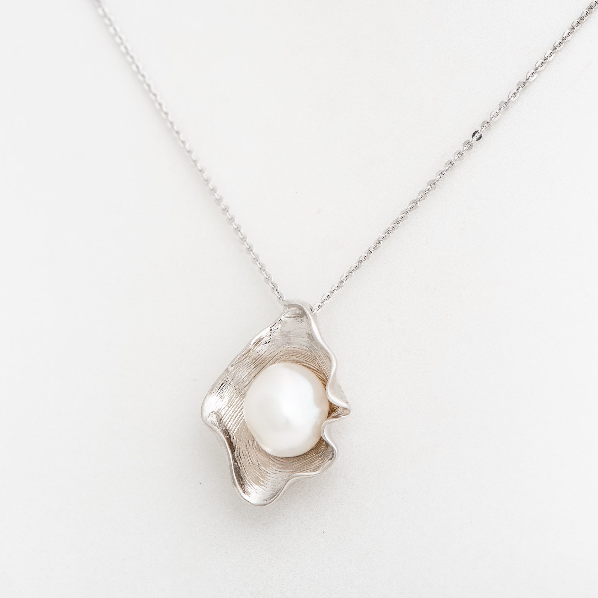 Die frivole Schale ist sowohl innen als auch hinten mit einem Linienmuster schön detailliert und zeigt somit eine entsprechende Textur. Die Auster hält die schöne Perle gefangen und hegt den schönen Glanz.