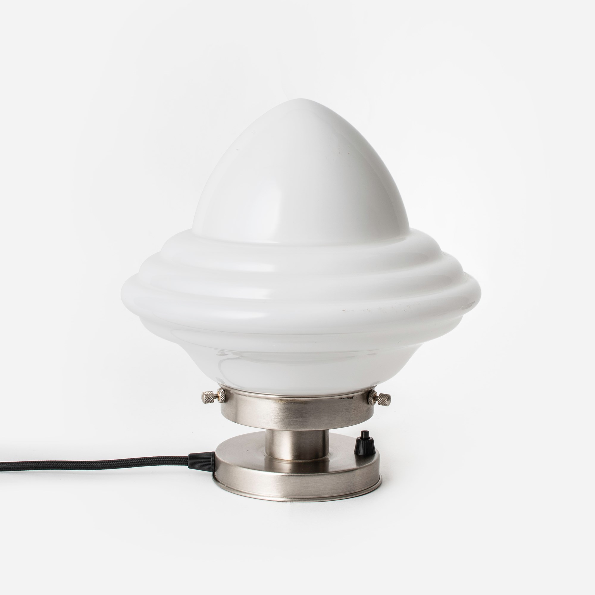 Mundgeblasener glasschirm mit die Form einer Eichel. Ein Art-Deco-Klassiker. Opalweißes Glas.